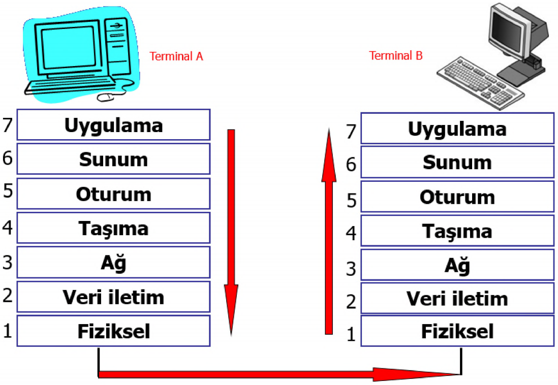 | 2. Veri İletim | Ethernet, PPP, Frame Relay, ATM, HDLC, ISDN |